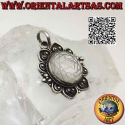 Silberner Sonnenanhänger auf Bergkristall geschnitzt, breiter Rand