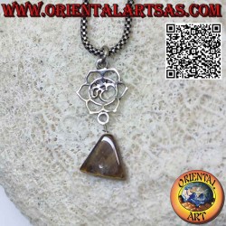 Anhänger mit ॐ Om-Klang am Ursprung des Universums in der Lotusblüte Symbol der Vollkommenheit und mit Schutzdreieck und Tigerauge, alles aus hypoallergenem 925‰ Silber. Die Oberfläche ist teilweise poliert, um die Verarbeitung hervorzuheben und ihre Schönheit über die Jahre zu gewährleisten. Nickelfrei