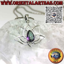 925er Silberanhänger der Lotusblume (heilige Blume im Buddhismus und Hinduismus) mit Aura-Quarz