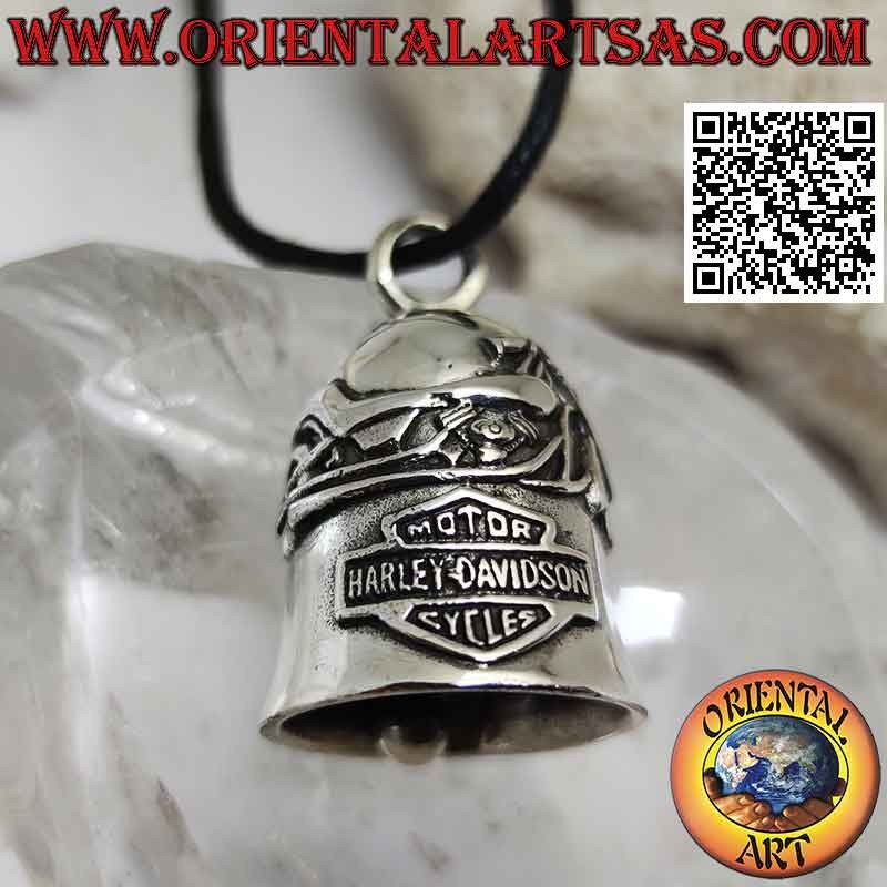 Silberner Glockenanhänger mit Motorrad und Harley Davidson Emblem
