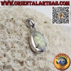 Silberanhänger mit ovalem Harlekin-Opal, glattem Rand und Krappen