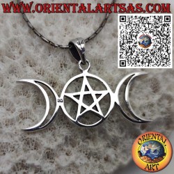 Dieser elegante Silberanhänger zeigt das Symbol der Dreifachen Göttin, bestehend aus zunehmendem Mond, Vollmond und abnehmendem Mond – ein Sinnbild für die drei Lebensphasen der Frau: Jungfrau, Mutter und weise Alte. In der Mitte befindet sich ein Pentagramm, ein kraftvolles Schutzsymbol, das mit den fünf Elementen verbunden ist: Erde, Luft, Feuer, Wasser und Geist.