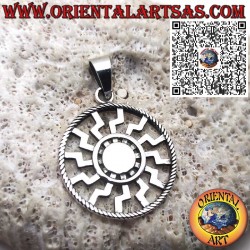 Hochwertiger Silberanhänger mit dem Motiv der Schwarzen Sonne oder des Sonnenrades, Durchmesser 27 mm.