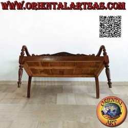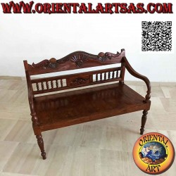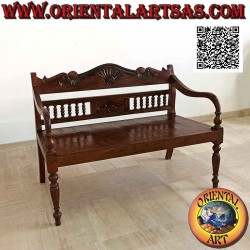 Bank mit Rückenlehne mit Säulen und handgeschnitzter Krone aus antikem Teakholz (unzerstörbares Holz verursacht keine Holzwürmer) auch ideal für Außenterrassen, Gärten etc ..., fertig und poliert mit Wachs