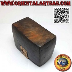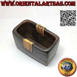 Traditioneller rechteckiger Stifthalter aus Lombok mit zentralem Korbgeflecht, in Terrakotta