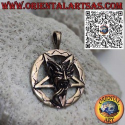 Bronzeanhänger mit Baphomet im Zentrum eines Pentakels, umschlossen von einem Kreis. Die antike Oberfläche hebt die Details hervor und verleiht ihm ein authentisches, kraftvolles Aussehen. Perfekt für Liebhaber des gotischen, okkulten oder alternativen Stils.