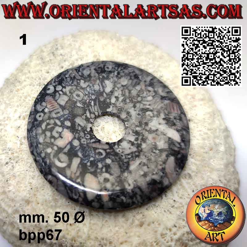 Fossiler Jaspis Disc/Donut Anhänger (50 mm. Ø, inkl. Kordel)