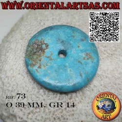 39 mm großer natürlicher tibetischer Türkis-Scheibenanhänger. Ø mit Kordelzug