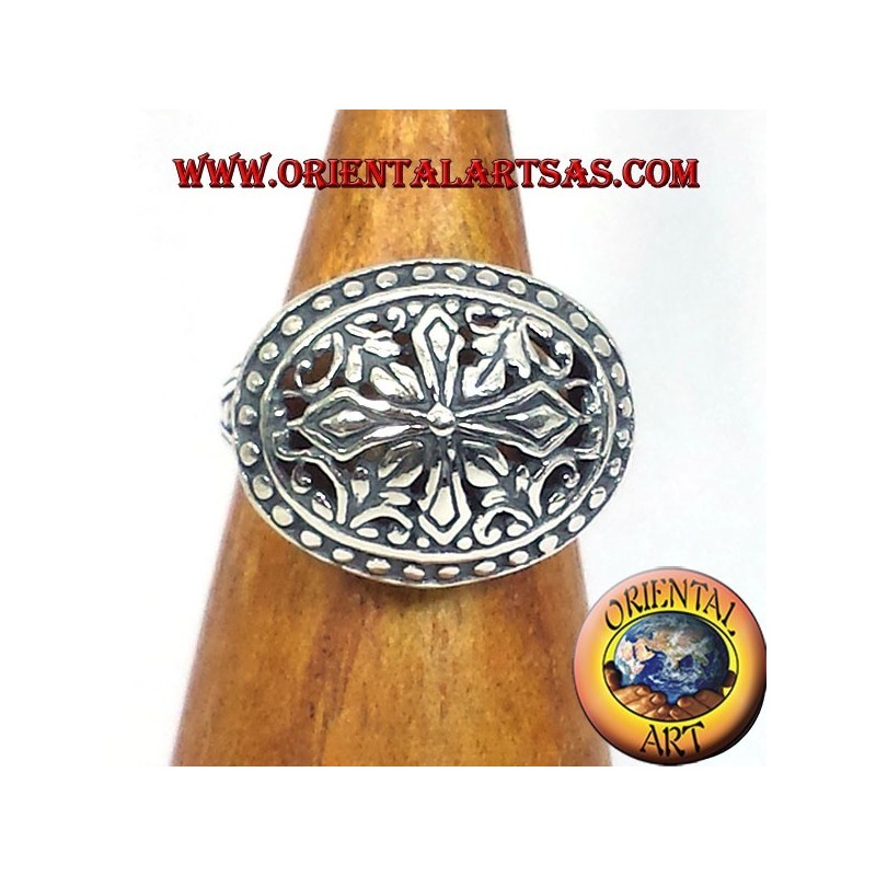 Perforierter und hoher Silberring im Empire-Stil mit Verzierungen rundherum, hergestellt aus hypoallergenem 925 ‰ Silber. Die Oberfläche ist teilweise brüniert, um die Verarbeitung hervorzuheben und ihre Schönheit über die Jahre hinweg zu gewährleisten. (Der Ring ist nicht plattiert, sondern aus massivem Silber)