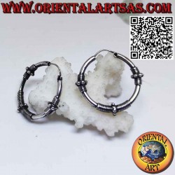 Massiver Creolenohrring aus 925er Silber mit drei Abschnitten aus gerolltem Draht und einer Kugelscheibe, handgefertigt von erfahrenen Handwerkern in Indonesien