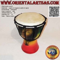 Der Korpus der Djembe besteht aus Mahagoniholz aus nachhaltigen Plantagen und besteht komplett aus Naturprodukten. Da sie von kleinen Handwerkern unter einfachsten Bedingungen hergestellt wird (kein Industrieprodukt), sind leichte Farbabweichungen des Holzes/Leders nicht zu vermeiden, sowie natürliche Unregelmäßigkeiten und leichte Farbunterschiede.