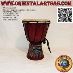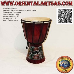 Der Korpus der Djembe besteht aus Mahagoniholz aus nachhaltigen Plantagen und besteht komplett aus Naturprodukten. Da sie von kleinen Handwerkern unter einfachsten Bedingungen hergestellt wird (kein Industrieprodukt), sind leichte Farbabweichungen des Holzes/Leders nicht zu vermeiden, sowie natürliche Unregelmäßigkeiten und leichte Farbunterschiede.