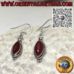 Ohrringe mit Shuttle-Karneol, umgeben von einem Zopf und drei Kugeln darunter, aus hypoallergenem, nickelfreiem 925‰-Silber. Die Oberfläche ist teilweise brüniert, was ihre Schönheit über die Jahre hinweg garantiert. (Sie ist nicht besänftigt)