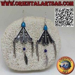 Dreieckige Silberohrringe mit Türkis- und Federanhängern