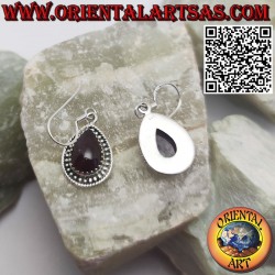Silberne Ohrringe mit ovalem, natürlichem tropfenförmigem Granat, besetzt und von Punkten umgeben, hergestellt von erfahrenen Handwerkern aus massivem, hypoallergenem, nickelfreiem 925-‰-Silber