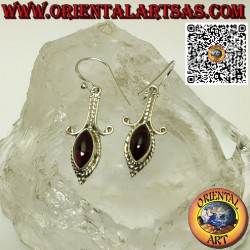 Lange handgefertigte Silberohrringe mit natürlichem Shuttle-Granat im Cabochonschliff, hergestellt von erfahrenen Handwerkern aus massivem, hypoallergenem, nickelfreiem 925-‰-Silber