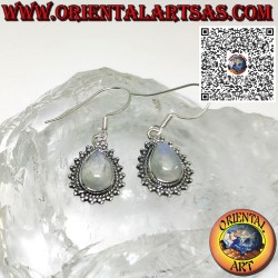 Silberohrringe mit tropfenförmigem Regenbogenmondstein, umgeben von Kugeln, hergestellt aus hypoallergenem, nickelfreiem 925‰-Silber, die Oberfläche ist teilweise brüniert, was ihre Schönheit im Laufe der Jahre garantiert (sie ist nicht plattiert), sie bleiben im Laufe der Zeit unverändert