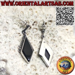 Wunderschöne und elegante Silberohrringe mit rautenförmigem Onyx und Markassit, hergestellt aus massivem, hypoallergenem 925‰-Silber von einem sehr guten thailändischen Goldschmied unter Verwendung von Schweizer Markassit und hochwertigem natürlichem Onyx.