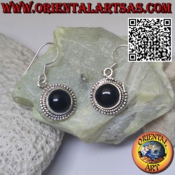 Wunderschöne Silberohrringe mit rundem Onyx, umgeben von Geflecht und Kugeln, handgefertigt von erfahrenen Handwerkern aus massivem, hypoallergenem 925 ‰-Silber. Die Oberfläche ist teilweise brüniert und nicht plattiert, daher garantiert sie ihre Schönheit und ihren Charme über die Jahre hinweg. Nickelfrei