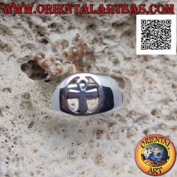 Glatter silberner Ring mit Ankh (Schlüssel des Lebens oder Ansata-Kreuz) im durchbohrten Kreis