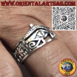 925er Silberring mit Horusauge und Ankh-Symbolen an den Seiten. Ägyptischer Schmuck, Symbol für Schutz, ewiges Leben und Weisheit. Ideal als spirituelles Amulett oder Geschenk.