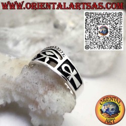 925er Silberring mit Horusauge und Ankh-Symbolen an den Seiten. Ägyptischer Schmuck, Symbol für Schutz, ewiges Leben und Weisheit. Ideal als spirituelles Amulett oder Geschenk.