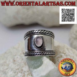 Breitbandiger Silberring mit ovalem Rosenquarz und Verflechtung in der Kontur, Bali