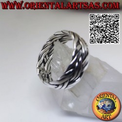 Silberner Bandring mit einem Paar 7 mm verdrillter Drähte. Breite, aus massivem hypoallergenem 925 ‰ Silber. Die Oberfläche ist teilweise brüniert, um die Verarbeitung hervorzuheben und ihre Schönheit über die Jahre hinweg zu garantieren. Es enthält kein Nickel