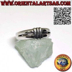 Ring mit horizontaler Teilung, verbunden durch 3 Linien, Symbol der Vereinigung und Verbundenheit, aus hypoallergenem 925 ‰ Silber. Die Oberfläche ist teilweise poliert, um die Verarbeitung hervorzuheben und ihre Schönheit über die Jahre zu gewährleisten. Nickelfrei