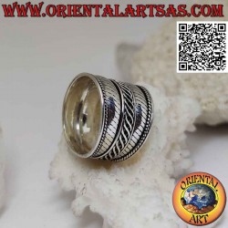 Breitband-Silberring mit zentraler Wellenlinie und seitlicher...