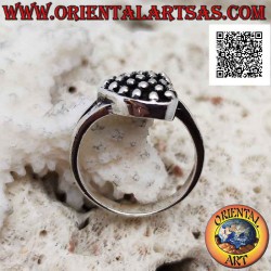 Silberring in Form eines horizontalen Herzens mit Flachrelief-Punkten innen