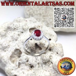 Silberring in Form einer Blume mit rundem Naturgranat in der Mitte...