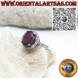 Elegant und stilvoll präsentiert sich dieser Ring aus 925er Sterlingsilber mit einem brillantgeschliffenen, natürlichen Granat, der in einem zarten Kreis aus weißen Zirkonia schwebt. Das tiefe Rot des Granats steht in faszinierendem Kontrast zum funkelnden Glanz der Zirkonia – ein ausdrucksstarkes Schmuckstück für besondere Anlässe oder als bedeutungsvolles Geschenk.