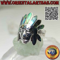 Die Federn sind aus Abalone-Paua-Muschel. Die Federn, die wir oft in indianischen Kopfbedeckungen sehen, haben die Bedeutung von Freiheit und Stärke, zwei eng verwandte Eigenschaften. Die Tapferkeit eines Kriegers wurde an der Anzahl der Adlerfedern auf seinem Kopfschmuck gemessen – wer viele hatte, hatte Führungsrollen.