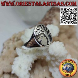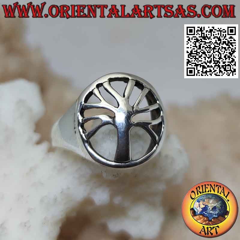 Glatter Silberring mit Lebensbaum im durchbrochenen Kreis (minimal)