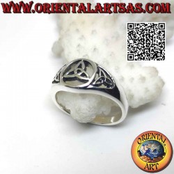 Runder perforierter Silberring mit zentralem und seitlichem Triquetra