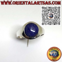 Eleganter 925er Silberring mit einem runden Lapislazuli , gefasst in einer schlichten, glatten Montierung, die die natürliche Schönheit des Steins hervorhebt.