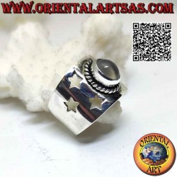 Silberner Bandring mit ovalem Cabochon-Mondstein und durchbohrten Sternen