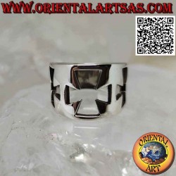Silberring mit glattem Band und drei perforierten Kreuzen