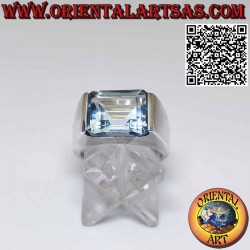 Schöner schlichter und eleganter Ring aus hypoallergenem 925er Silber mit horizontal montiertem natürlichem rechteckigem Blautopas