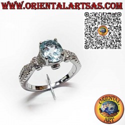 925er Silberring mit ovalem Blau-Topas und seitlichen Zirkonia