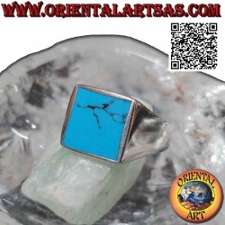 Glatter Silberring mit quadratischem Türkis bündig mit Rand 13x13 mm