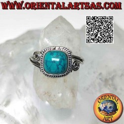 • Silberring mit Cabochon-Türkis umgeben von Verflechtung und asymmetrischer Spirale an den Seiten