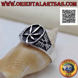 Silberring mit Marihuana-Blatt im Oval im Basrelief und Adler an den Seiten