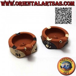 Aschenbecher und Weihrauchbrenner, hergestellt und handbemalt von erfahrenen indonesischen Kunsthandwerkern aus Keramik in Form einer Schildkröte mit aufgemalten Spiralen