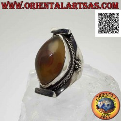 Silberring mit zweifarbig ovalem Shiva's Eye Achat auf nepalesischer Fassung (gelb - orange)