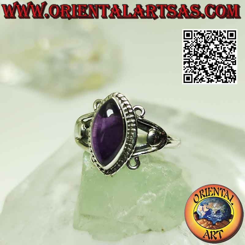 Der violette Amethyst, der den Tierkreiszeichen Fische, Wassermann und Schütze zugeordnet ist, ist genau auf der chromatischen Ebene mit dem sechsten Chakra verbunden. Er bearbeitet daher den gesamten Bereich des Nervensystems, nicht nur auf psychologischer Ebene, sondern auch im Hinblick auf Pathologien wie Müdigkeitskopfschmerzen und Migräne. Juwel aus hypoallergenem 925 ‰ Silber. Die Oberfläche ist teilweise brüniert und weder behandelt noch plattiert, so dass sie ihre Schönheit über die Jahre garantiert.