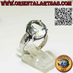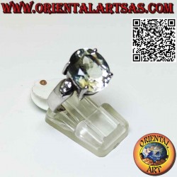 Schöner Ring mit Prasiolith Green Amethyst ist einer der schönsten hellgrünen Halbedelsteine mit zwei Zirkonen auf beiden Seiten, handgefertigt aus massivem hypoallergenem 925er Silber. Nickelfrei, Einzelstück