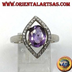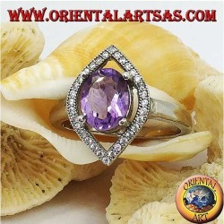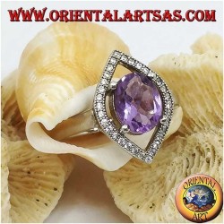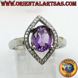 925 Silberring mit natürlichem ovalen Amethyst und navettenförmiger Zirkonfassung. Höhe 17 mm, Breite 12 mm. Königliche Eleganz.