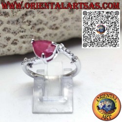 Silber 925 Ring mit natürlichem Tropfen-Rubin und asymmetrischen Zirkonia